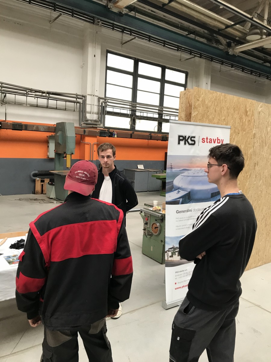 Za naši skupinu firem se zúčastnilo personální oddělení společně s Vojtěchem Nepeřilem, absolventem oboru Technické zabezpečení budov SPŠ a VOŠ Žďár n. S., který na této škole ukončil svoje studium před dvěma lety. V naší společnosti PKS stavby a.s. působí druhým rokem, z pozice asistenta stavbyvedoucího se posunul na pozici mistra, což je inspirativní příklad pro současné studenty.