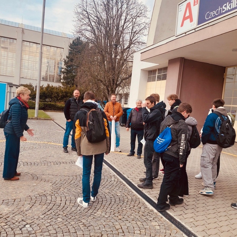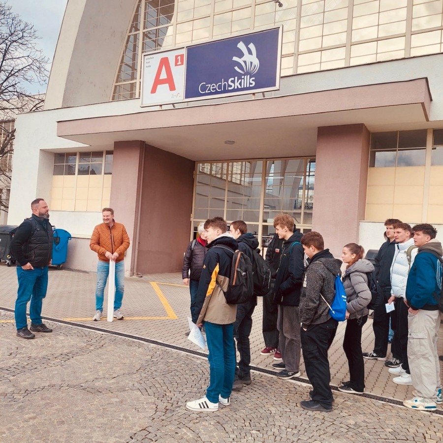 Už během cesty autobusem jsme studenty a učně seznámili s naší skupinou firem a předali jim drobné dárky. Cílem návštěvy veletrhu CzechSkills bylo jediné – motivovat mladou generaci k řemeslu, ukázat jim reálnou praxi a podpořit jejich chuť učit se novým věcem.