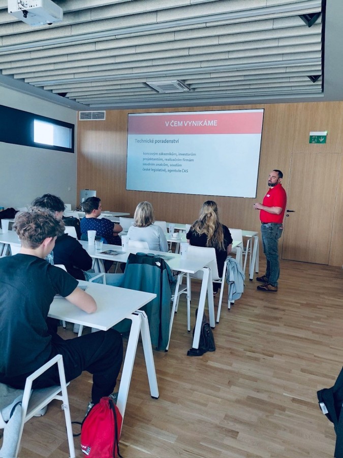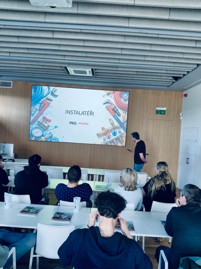 Celé dopoledne se neslo v duchu předávání zkušeností a ukázek toho, jak to funguje v praxi. Představili jsme Skupinu firem PKS a naši práci. Technik TZB Miroslav Smetana ze společnosti PKS stavby přiblížil obor instalatérů. Produktový manažer ze společnosti PKS okna František Hroch představil tuto společnost. Vedoucí divize výroby dřevěných oken Pavel Dvořák provedl provozem.