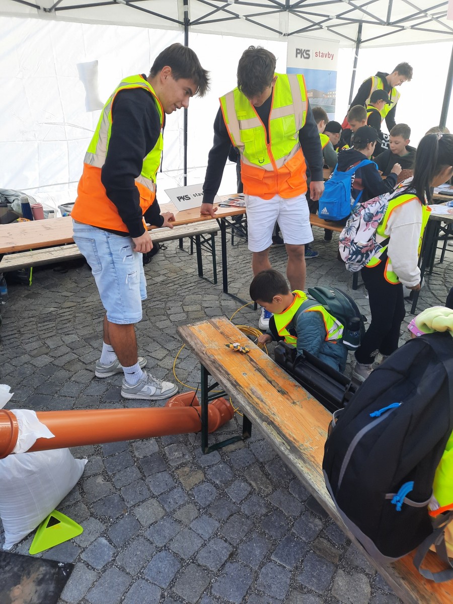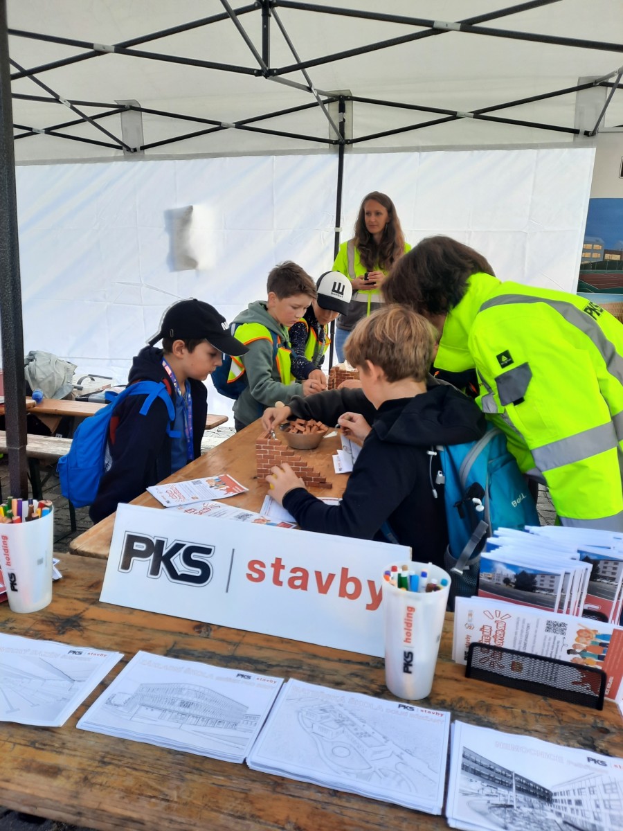 Na našem stánku jsme představili PKS stavby prostřednictvím praktických ukázek s ponorným vibrátorem, potrubní kamerou a populární stavebnicí Teifoc. Děti měly možnost vše vyzkoušet a zájem byl obrovský. Na stánku nás reprezentovaly čtyři kolegyně z HR, kterým vydatně pomáhali studenti stavební školy. Ti obsluhovali zejména dva zmíněné přístroje a přitahovali pozornost návštěvníků.
