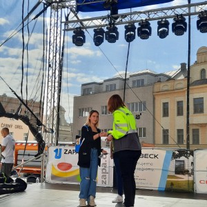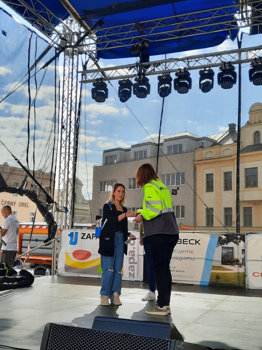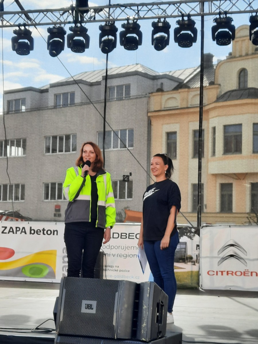 Na pódiu za naši firmu vystoupila vedoucí HR Zdeňka Juránková, která představila společnost a pozvala návštěvníky právě k našemu stánku.