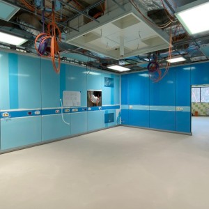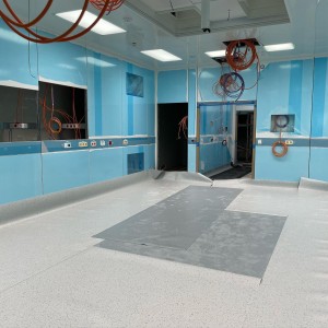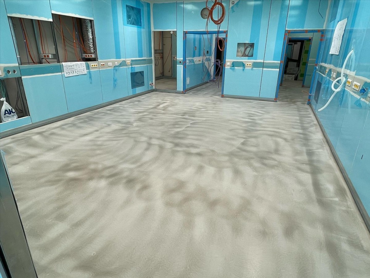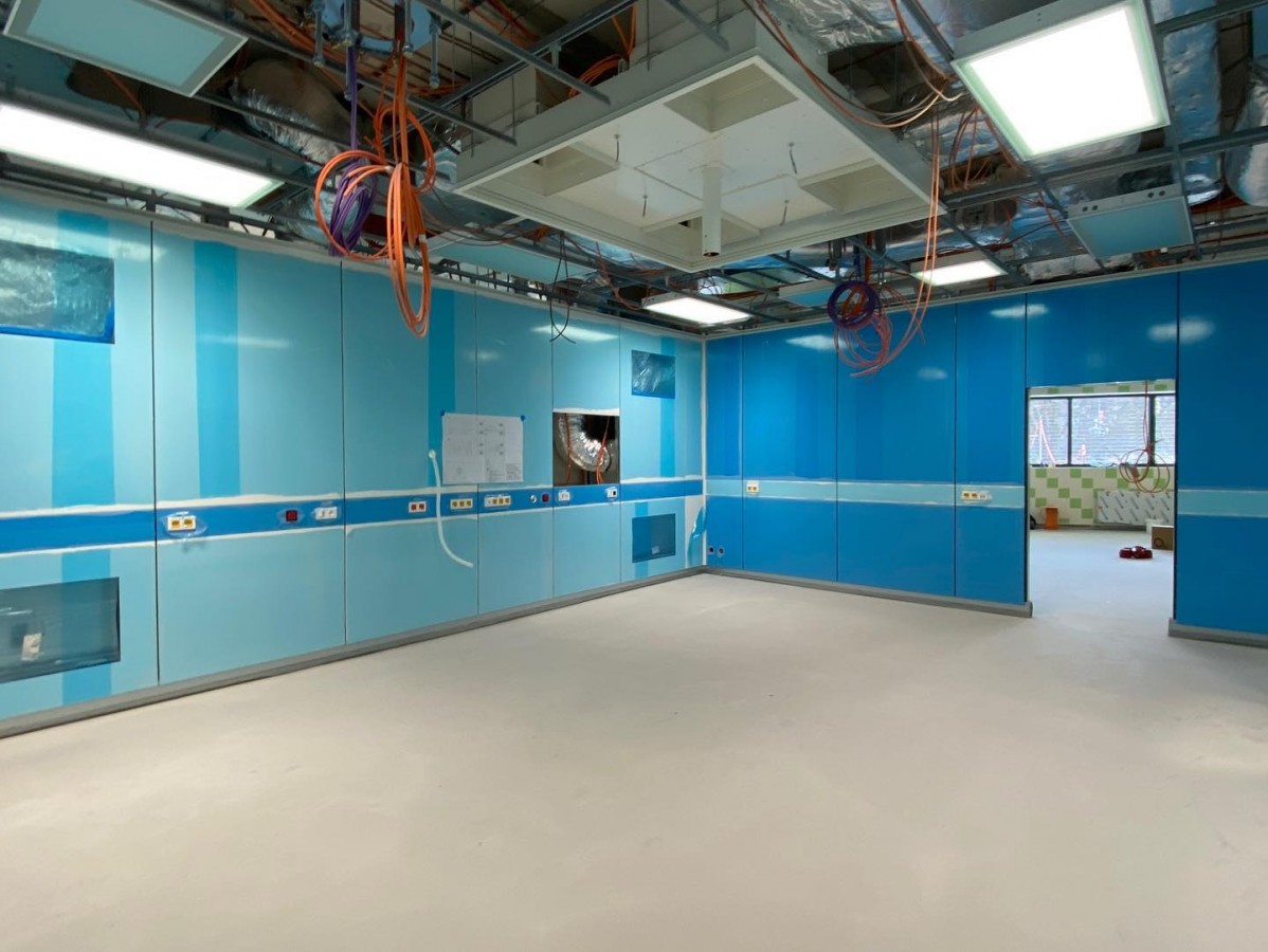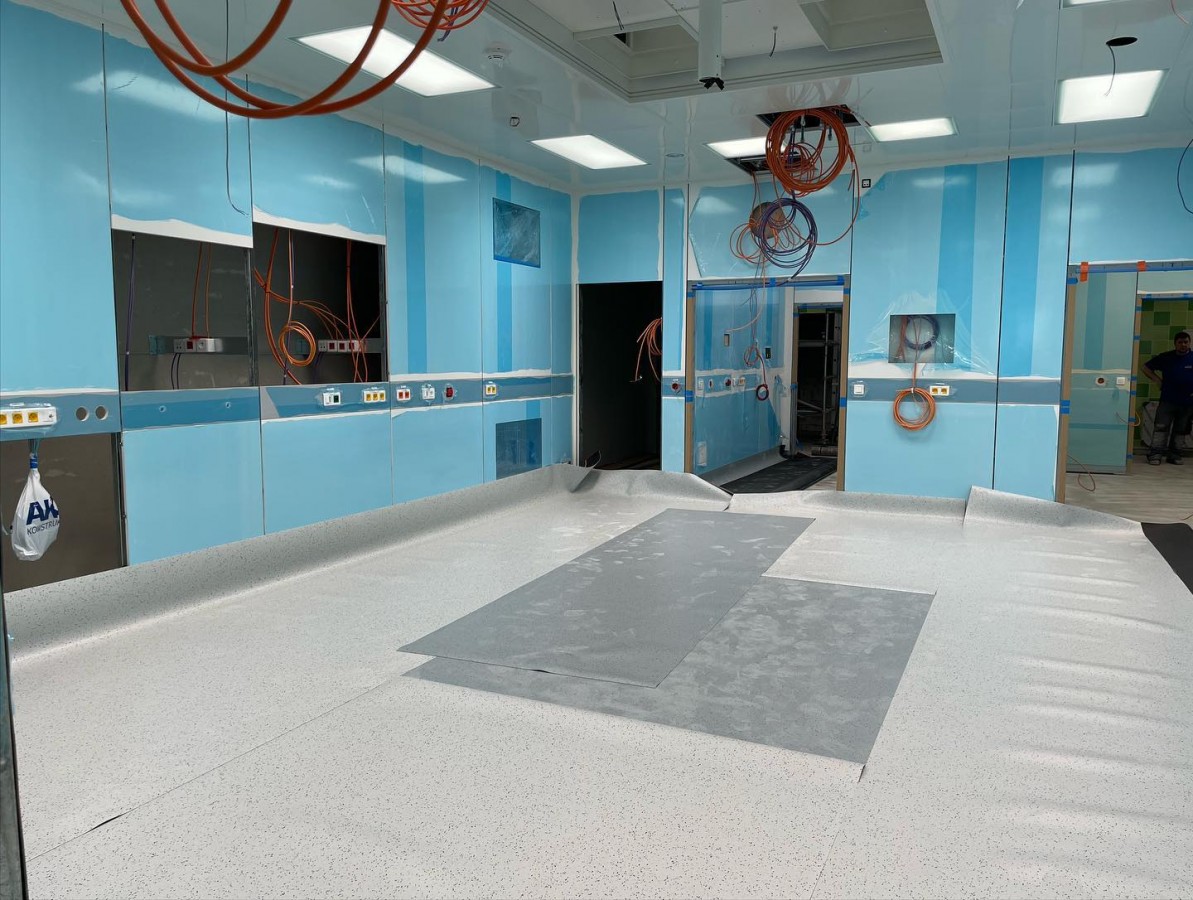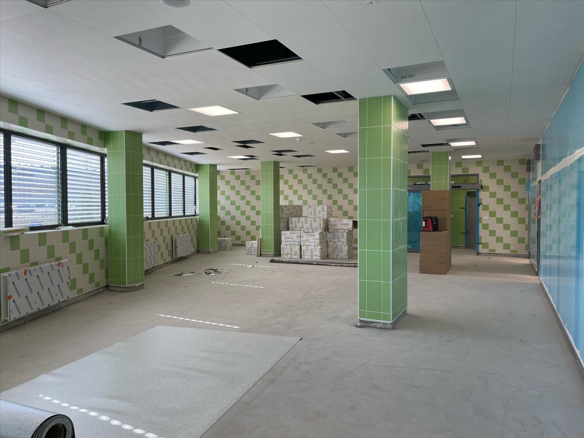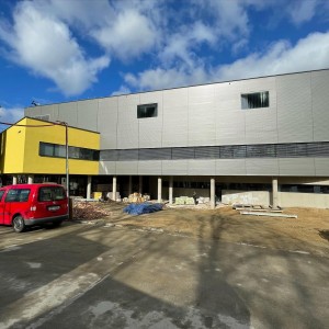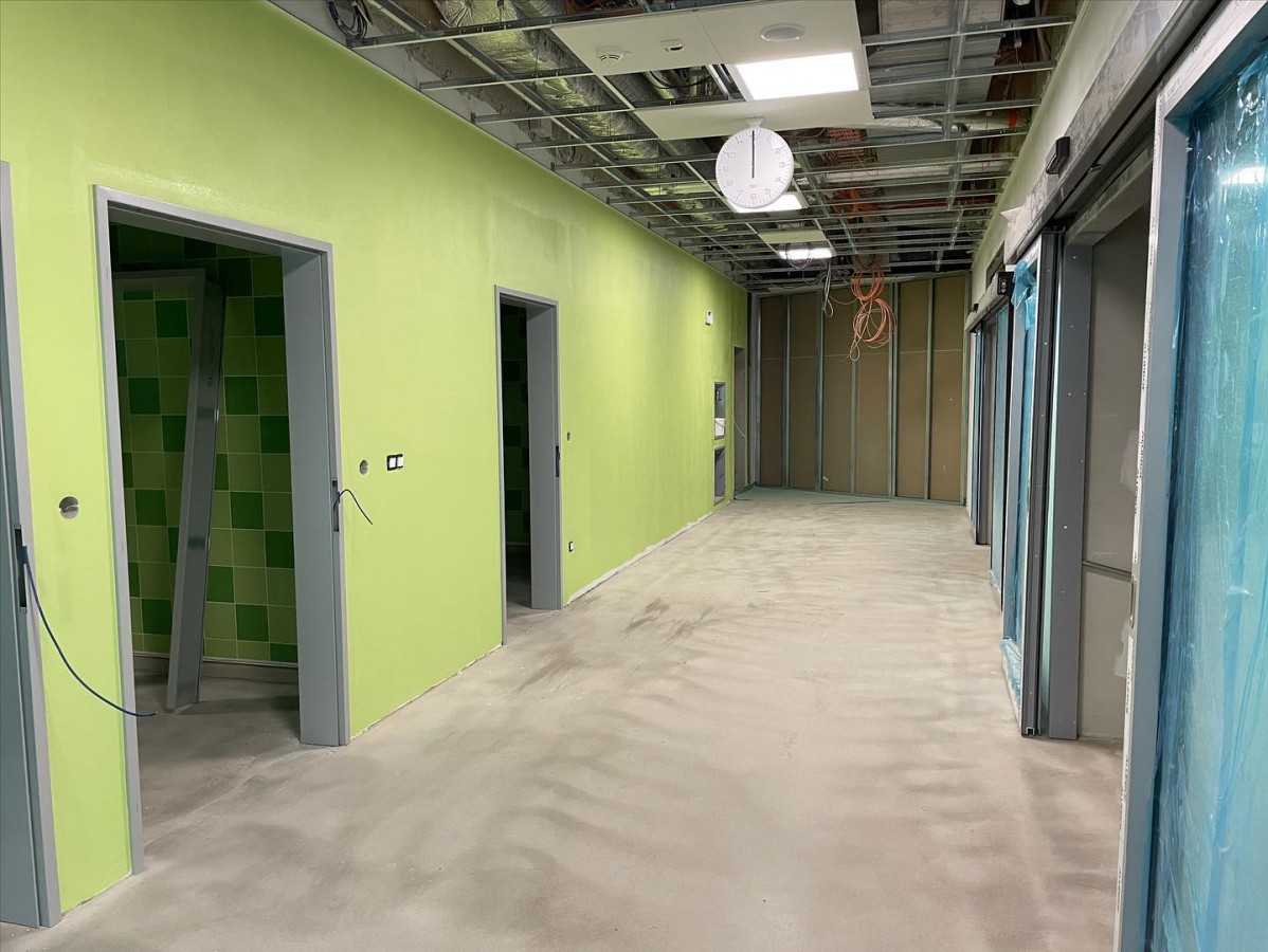 Přístavba a rekonstrukce operačních sálů prochází svojí druhou etapou plynule do konce. Rekonstruovaný objekt je nyní kompletně opláštěn a provádíme vnitřní dokončovací práce včetně kompletací. Rovněž finišujeme ve vnitřní části strojovny vzduchotechniky, kde po montáži a napojení všech jednotek provádíme doizolování rozvodů a postupně budou zařízení uváděna do provozu. Samotné vestavby operačních sálů prochází kompletací včetně montáží a připojení specifických lékařských technologií. V ostatních vnitřních prostorách probíhají také dokončovací práce – kladení PVC, kompletace podhledů, montáže zárubní a další. Zároveň došlo k náročnému propojení nových prostor operačních sálů s těmi stávajícími, což přineslo mimo jiné nutné dílčí odstávky v provozu třebíčské operativy. Následovat budou venkovní terénní úpravy, provedení dokončení zateplení fasády a zhotovení přilehlých komunikací. Už v létě se tak pacienti mohou těšit na fungování zbrusu nového a moderního pavilonu operačních sálů.