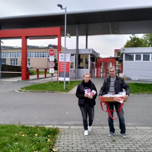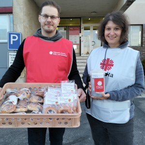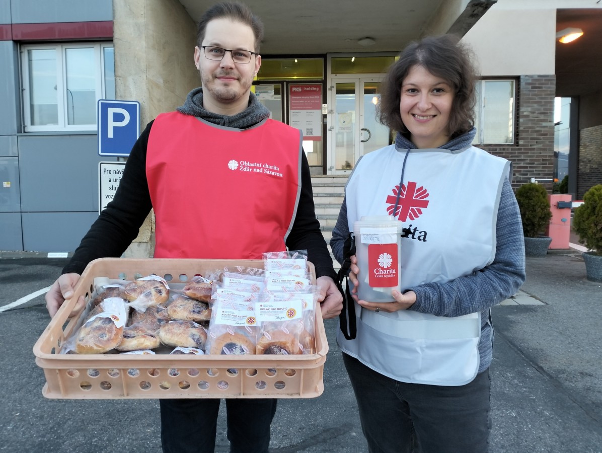 Pracovníci a dobrovolníci Oblastní charity Žďár nad Sázavou dorazili na PKS už před pátou hodinou ranní. Nejdříve prodávali sladké koláče u vrátnice Jamská a následně se přesunuli na recepci Brněnská. Odpoledne si pak ještě výborným koláčem mohli zpříjemnit ti, kteří procházeli přes vrátnici Jamská, kde dobrovolníci koláče prodávali ten den už podruhé.
