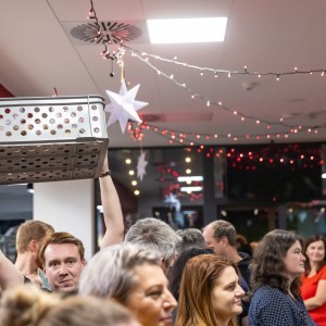Když přišel čas na závěrečný okamžik, společně jsme odpočítali a rozzářili náš vánoční strom PKS. Ten letos svítí v krásných červenobílých barvách.