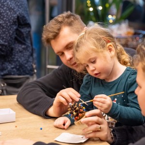 Vánoční dílničky byly také oblíbeným místem. Děti si zde vyráběly ozdoby nebo dekorovaly šišky tak, aby připomínaly vánoční stromeček. Za svou kreativitu od nás dostaly výborné perníčky.