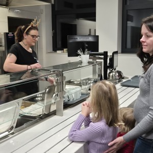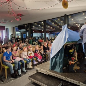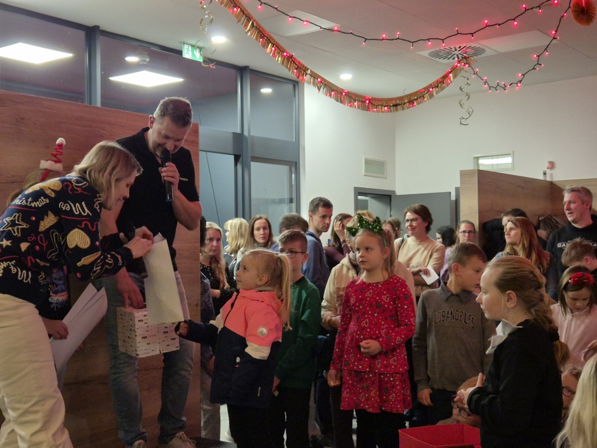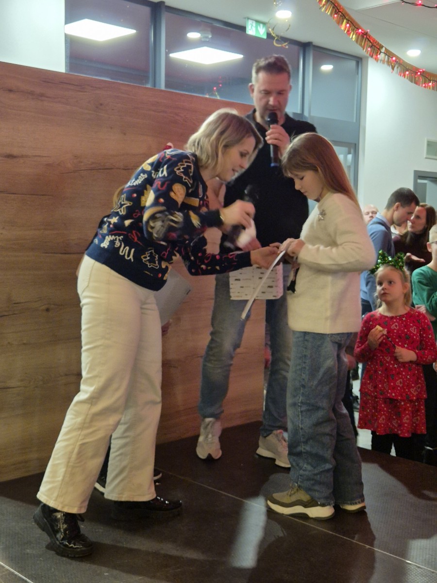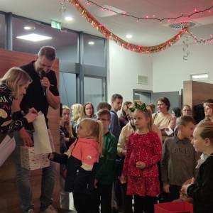 - odevzdávaly obrázek vytvořený v dílničce a za odměnu získaly adventní čokoládový kalendář, který rozdával krásný anděl a legrační malý čertík